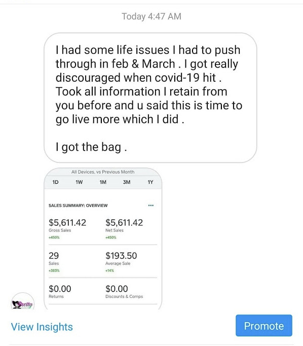The difference is like night and day from when I tried to do it myself and when I have a roadmap. I made my first big ticket sale with less than 200 Instagram followers!